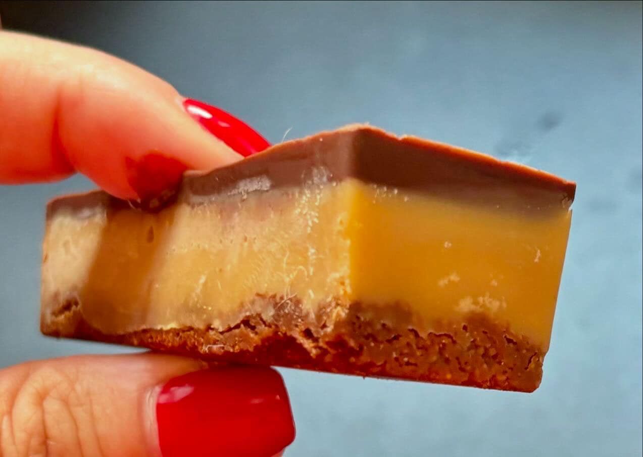 אז הנה זה, בא חטיף טוויקס טבעוני,מתכון מאת סוניה אנדרלין: הקראנצ’יות של הקרסט, השכבה הקרמלית של חמאת הבוטנים והשוקולד המושלם למעלה – כל ביס הוא פשוט חלום מתוק.
