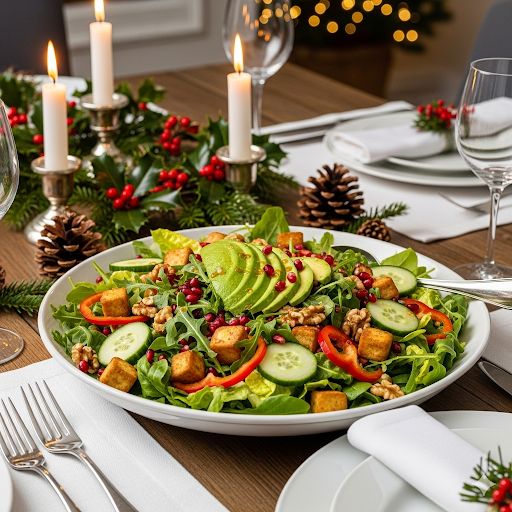 סלט טופו קלוי עם ירקות חגיגיים ורימונים