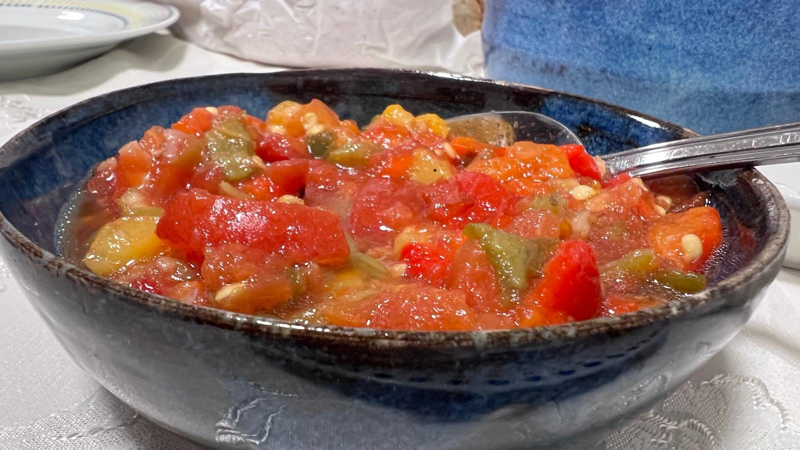 מדובר בתבשיל טונסאי עשיר ומשביע שמחבר בין מקרונים לבין מגוון קטניות, שילוב שנותן גם טעם עמוק וגם ערך תזונתי גבוה במיוחד. אבל מה שבאמת מרים את המנה והופך אותה לבלתי נשכחת, זו הסלטה משוואיה, סלט קלוי של פלפלים מתוקים, פלפלים חריפים ועגבניות, שמביא איתו חריפות מעודנת, רעננות ועומק של טעמים. יחד, זו פשוט חגיגה. יוצא אש.