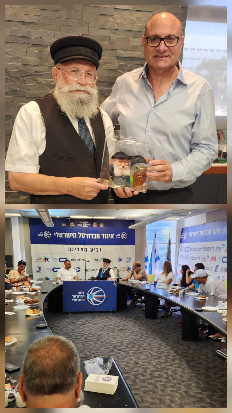 ומי שעושה חיל בימים האחרונים הוא הרב יעקב גלויברמן, יו״ר ארגון "יד ביד" שנמצא בכל מקום – מחלוקת מזון לנזקקים ועד ביקורים אצל גדולי האומה. רק השבוע התארח בבית הנשיא הרצוג יחד עם בנו בצלאל, והעניק לנשיא דבש מכפר חב״ד וספר על פי שיחות הרבי. הנשיא מצדו החזיר ברכה חמה והתרגש לשמוע על פעילות החסד הענפה. וזה לא נגמר שם – הרב תקע בשופר לראשי הספורט בישראל, בירך את שינו זוארץ ועמוס פרישמן, ואפילו מצא זמן לבקר בבנק לאומי, שם הודה למנכ״ל חנן פרידמן ולעובדי הבנק על שיתוף הפעולה. בקיצור – ידיו מלאות עשייה וידו עוד נטויה.