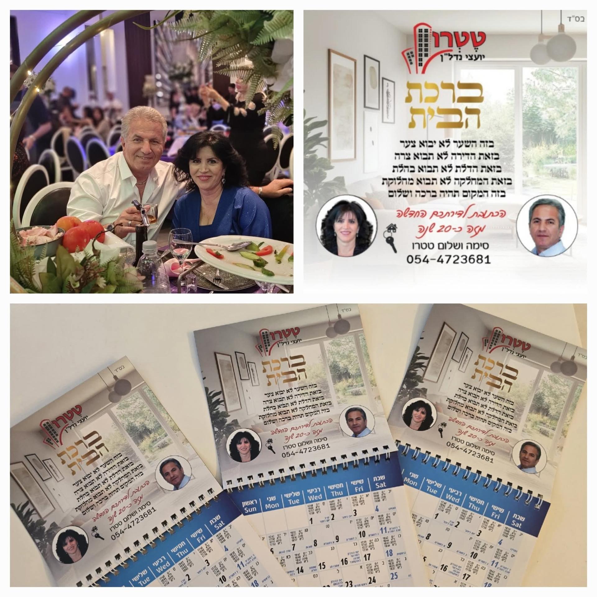 ונמשיך עם סימה טטרו – הגברת הראשונה של עולם הנדל״ן ובעלה היקר, שעוד לפני שארזו מזוודות לחופשה החלומית שלהם, הם דאגו להזמין לוחות שנה עבורכם, כדי לפנק את הלקוחות לקראת ראש השנה וחזרו עם מצברים טעונים, רוח רעננה והמון אהבה בלב. סימה מבקשת להודות על שנה מצויינת, מבורכת ומלאה בעשייה, ומאחלת ללקוחותיה, לחבריה, לבני המשפחה, לקולגות היקרים ולכולנו שנה טובה, חזרה מהירה של החטופים, הצלחה לחיילינו והשבת השקט למדינה האהובה. אמן ואמן!