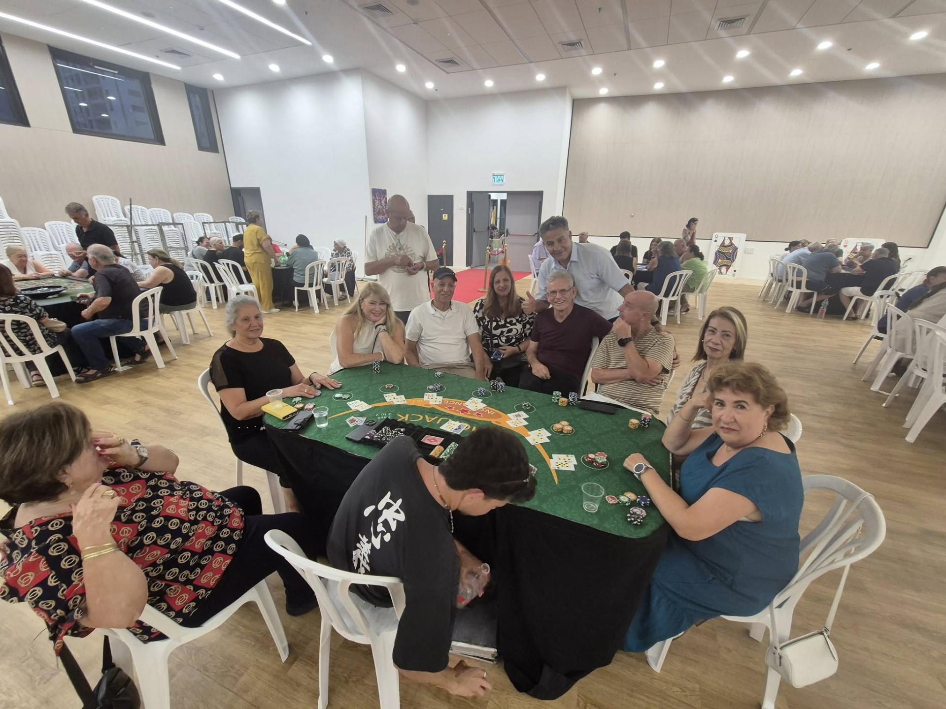 קזינו בבאר יעקב? רק בשביל הכיף. בני הגיל השלישי בבאר יעקב נהנו מערב פנאי מושקע במיוחד, עם אוכל עשיר, מוזיקה טובה ומשחקי קזינו שלא היו מביישים את לאס וגאס. ראש העיר, ניסים גוזלן, הגיע לברך ושמח לראות את התושבים נהנים. אול-אין של קהילה וחיוך.