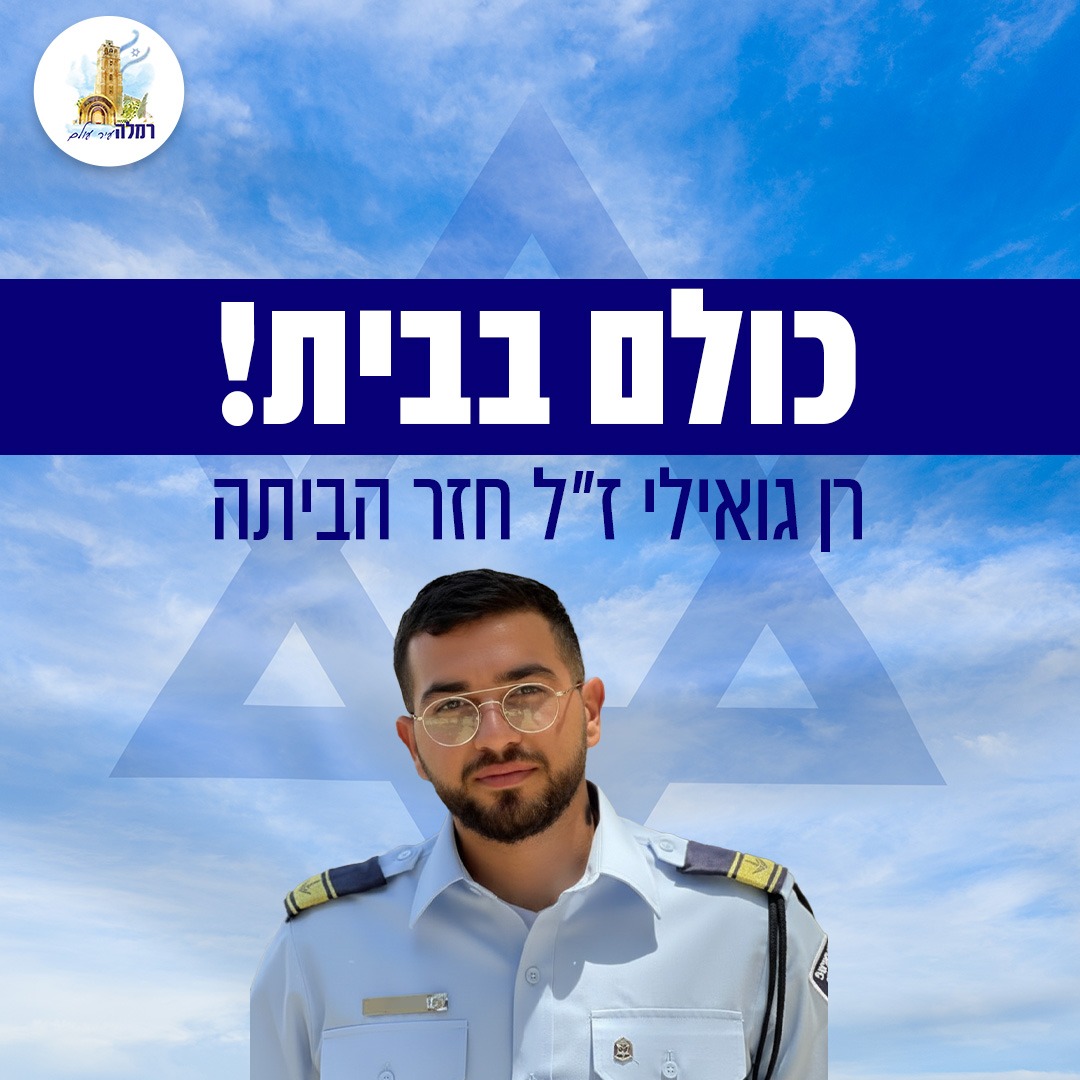העיר רמלה קיבלה בכאב עמוק את הבשורה על השבתו של רן גואילי הי״ד, לוחם היס״מ, שנחטף לעזה במהלך אירועי השבעה באוקטובר והיה החטוף האחרון שנותר שם. רן ז״ל, מהראשונים שיצאו להילחם באותו יום קשה, שב לישראל כשהוא אינו בין החיים, ויזכה כעת לקבר ישראל.