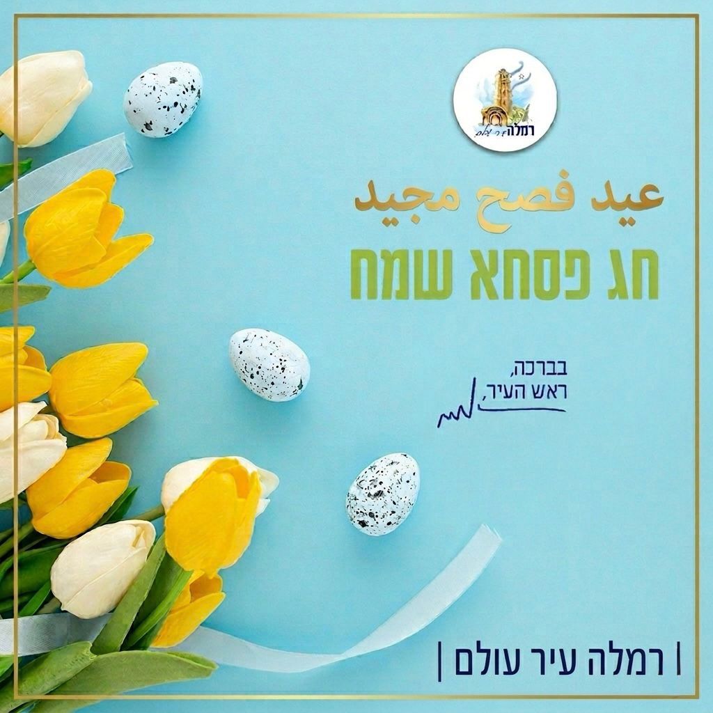 ראש עיריית רמלה, מיכאל וידל, פרסם ברכה חגיגית לקהילה הנוצרית בעיר לרגל חג הפסחא, והעביר מסר של אחדות, תקווה וחיים משותפים בעיר הרב־תרבותית.