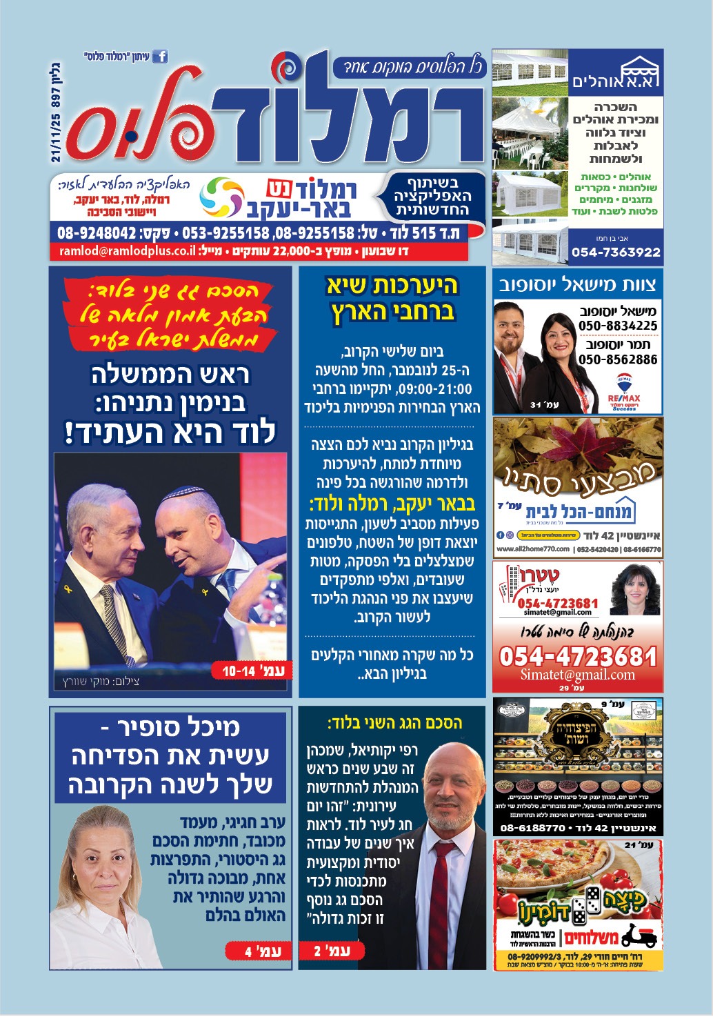 העיתון החדש שלנו כבר מוכן ומחכה לכם, חינמי לחלוטין, גם במהדורה מודפסת וגם במהדורה דיגיטלית נגישה ונוחה לקריאה. בואו להתעדכן, להתרגש ולהישאר עם היד על הדופק בכל מה שמעניין את לוד, רמלה ובאר יעקב!