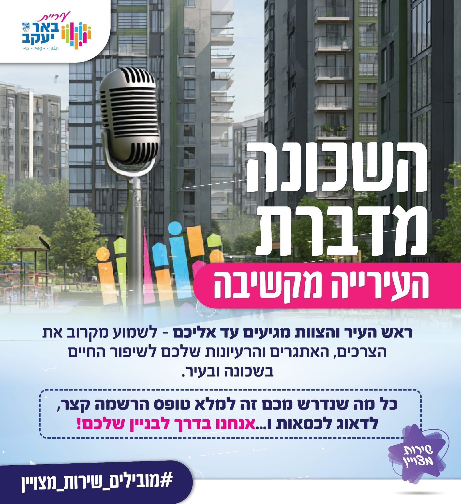 עיריית באר יעקב יוצאת ביוזמה קהילתית חדשה שמטרתה לחזק את הקשר הישיר עם התושבים: ראש העיר ניסים גוזלן, סגניו והצוות המקצועי של העירייה יגיעו אחרי החגים בעצמם אל השכונות של תושבי העיר – כדי לפגוש את התושבים בגובה העיניים.