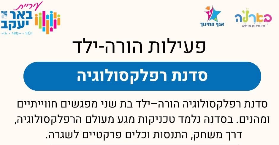 במסגרת הסדנה ייחשפו המשתתפים לטכניקות מגע מעולם הרפלקסולוגיה, דרך משחק, התנסות וכלים פרקטיים לשגרה, לצד תרגול מעשי המחזק את הקשר בין הורים לילדיהם ומעניק חוויה נעימה, מקרבת ומשמעותית.