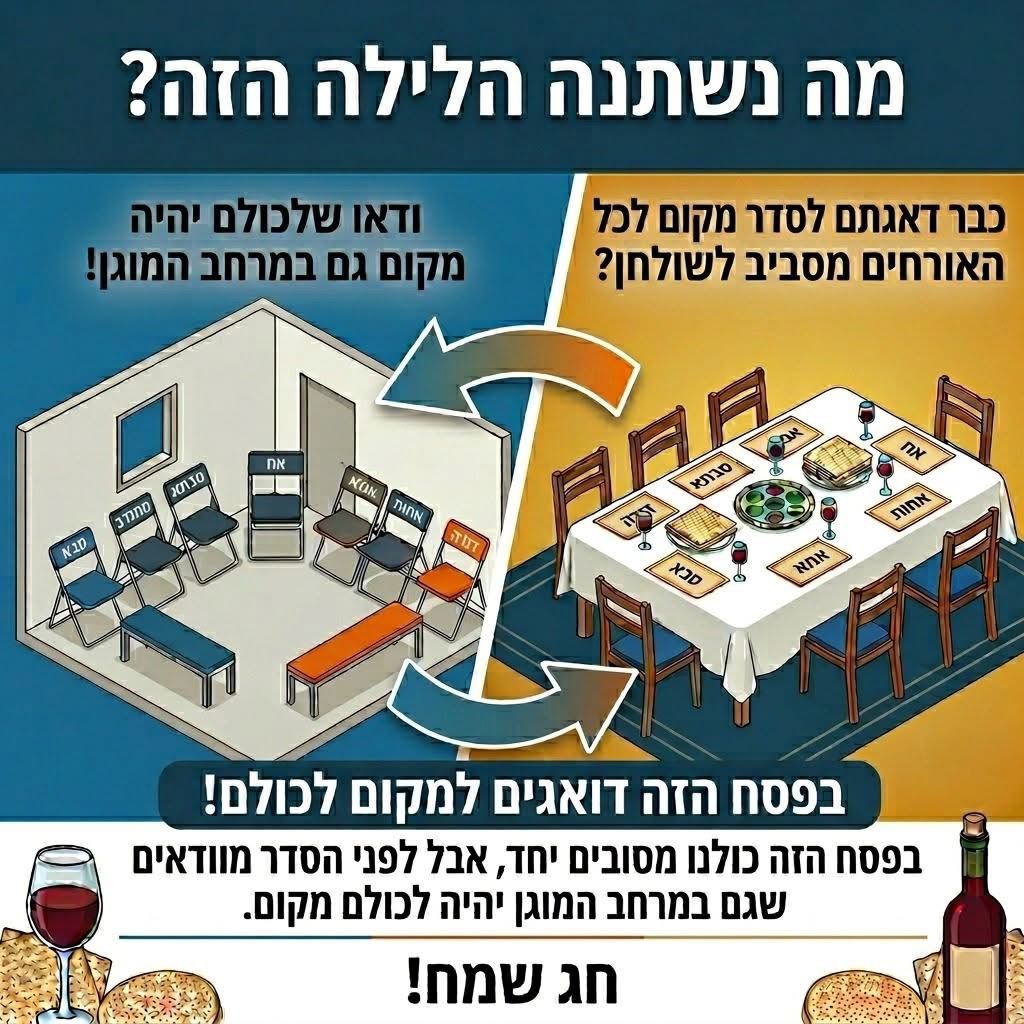 במסרים שפורסמו לציבור הודגש כי לצד ההכנות לשולחן החג והאירוח המשפחתי, חשוב לוודא כי קיים מקום מסודר ונגיש לכלל האורחים גם במרחב המוגן, במיוחד בתקופה רגישה זו שבה נדרשת דריכות ביטחונית.