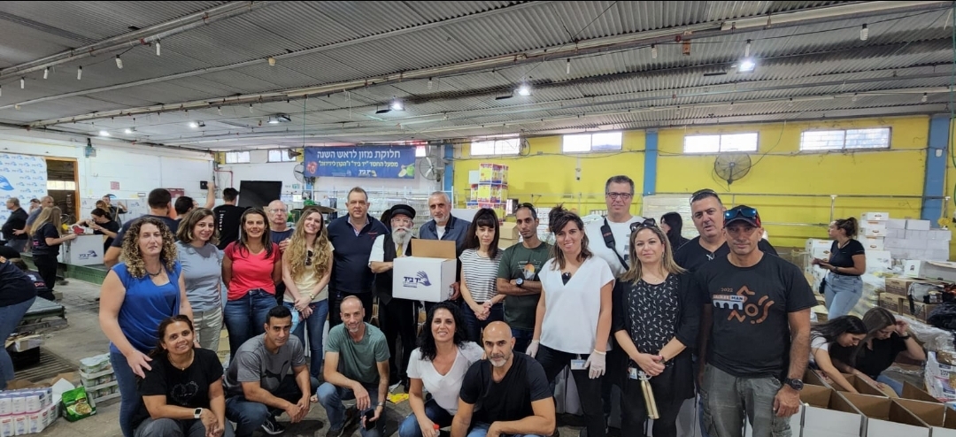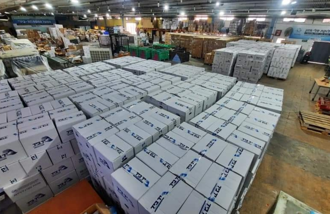 חלק מעשרת אלפי חבילות המזון שנארזו היום במפעל החסד "יד-ביד"