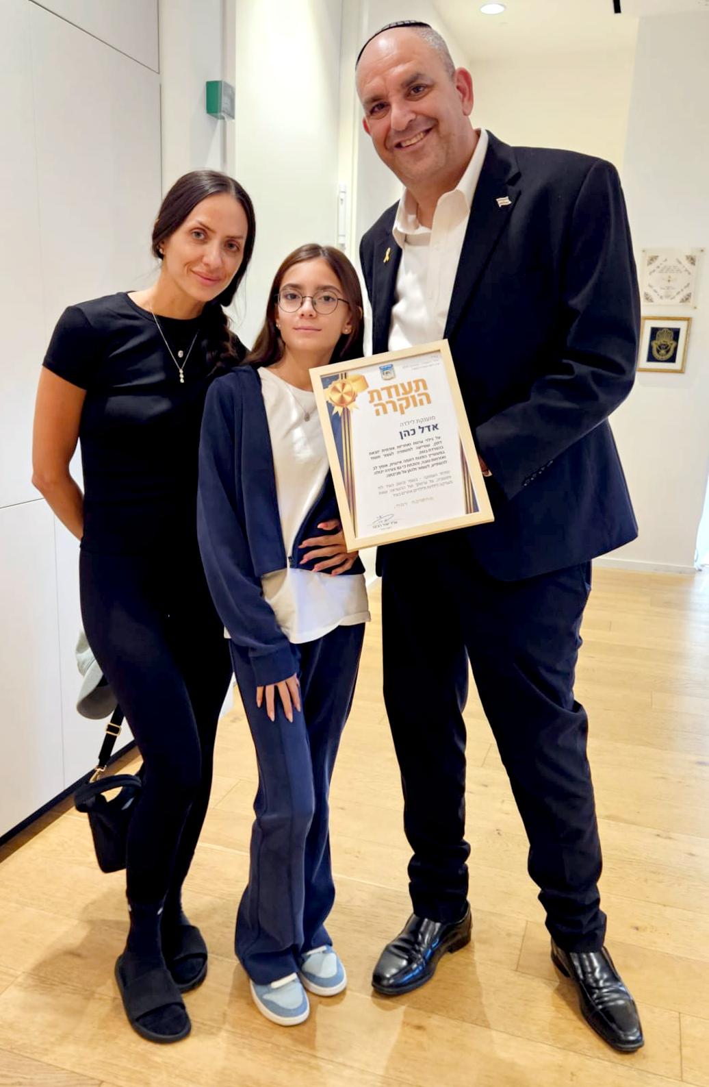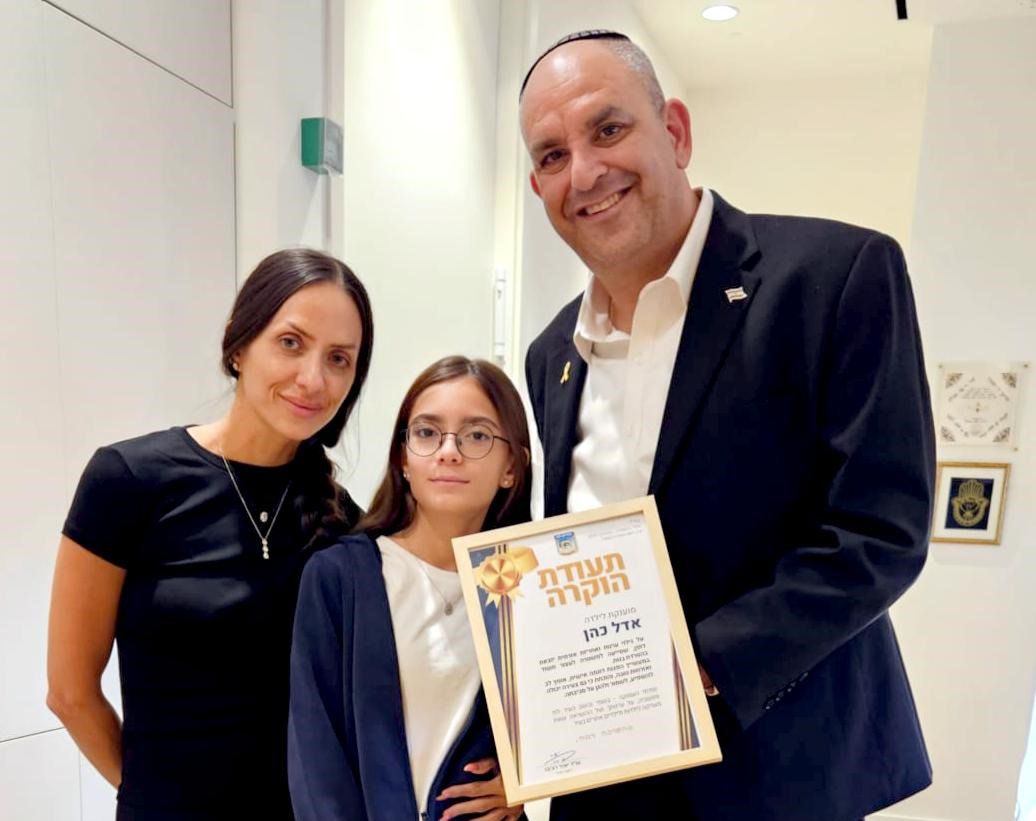 ילדה אחת שעשתה שינוי גדול: אדל כהן מלוד קיבלה תעודת הוקרה מראש העיר על גילוי ערנות ואומץ לב