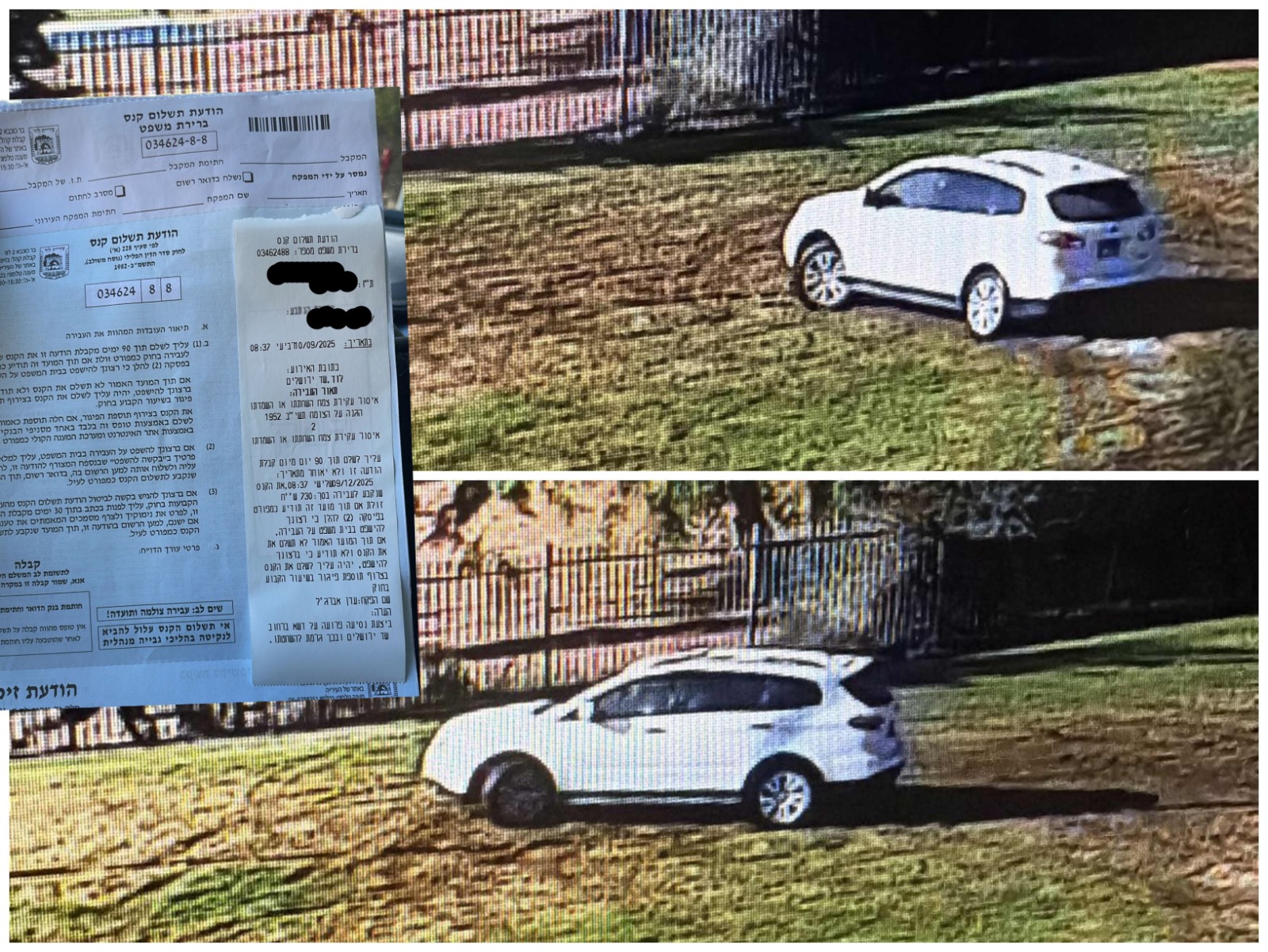 בתמונה: מצלמות העירייה תיעדו את הרכב שביצע את העבירה והשחתת המדשאות והקנס שקיבל מהשיטור העירוני