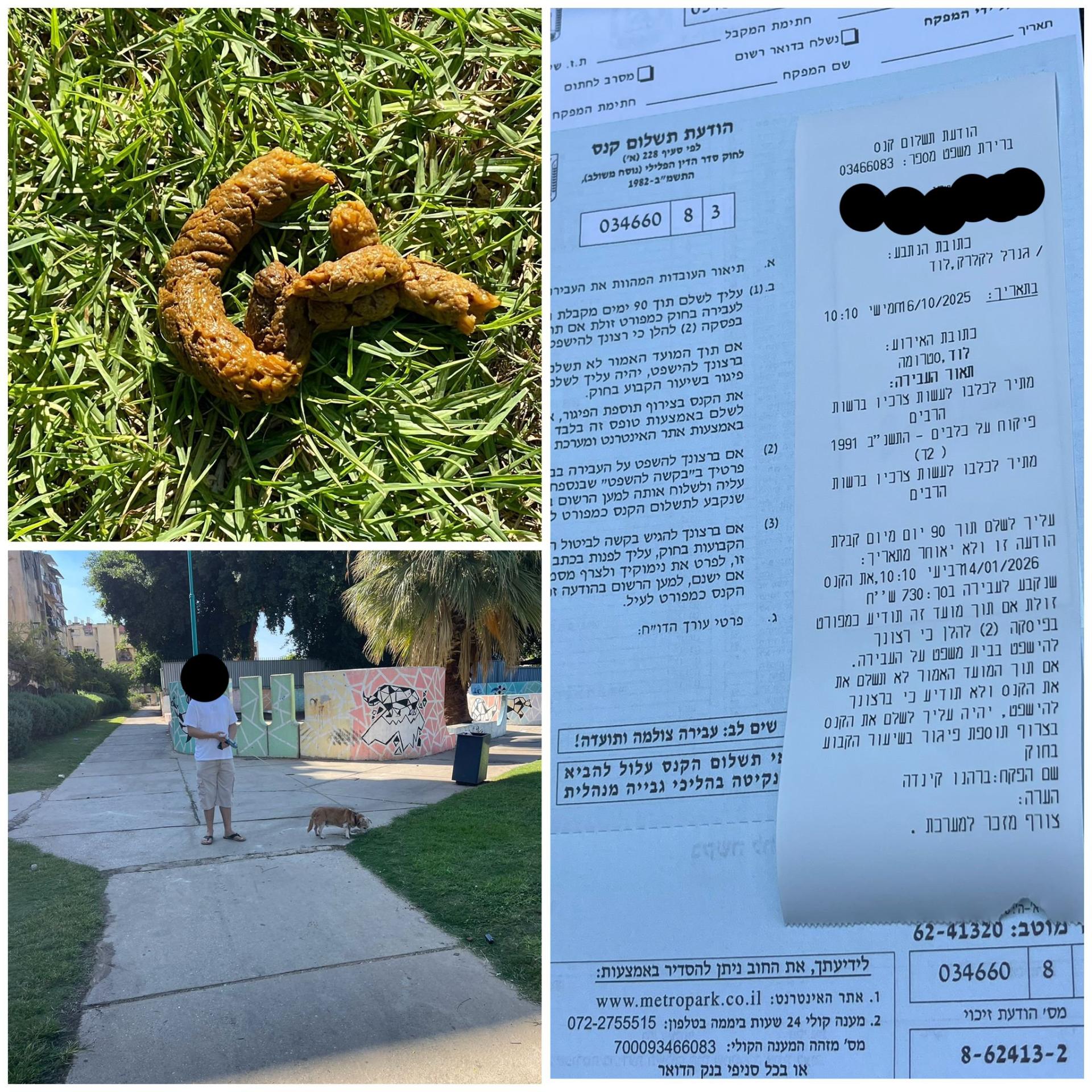 תושב קיבל דוח כספי על אי איסוף צואת הכלב