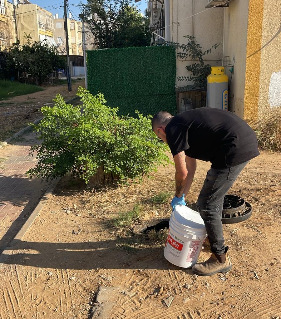 הדברה בפתחי הביובים בסמוך לבנייני המגורים בלוד