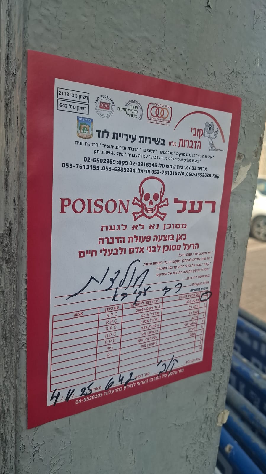 מודעות אחרי ההדברה - למניעת נגיעה ברעלים