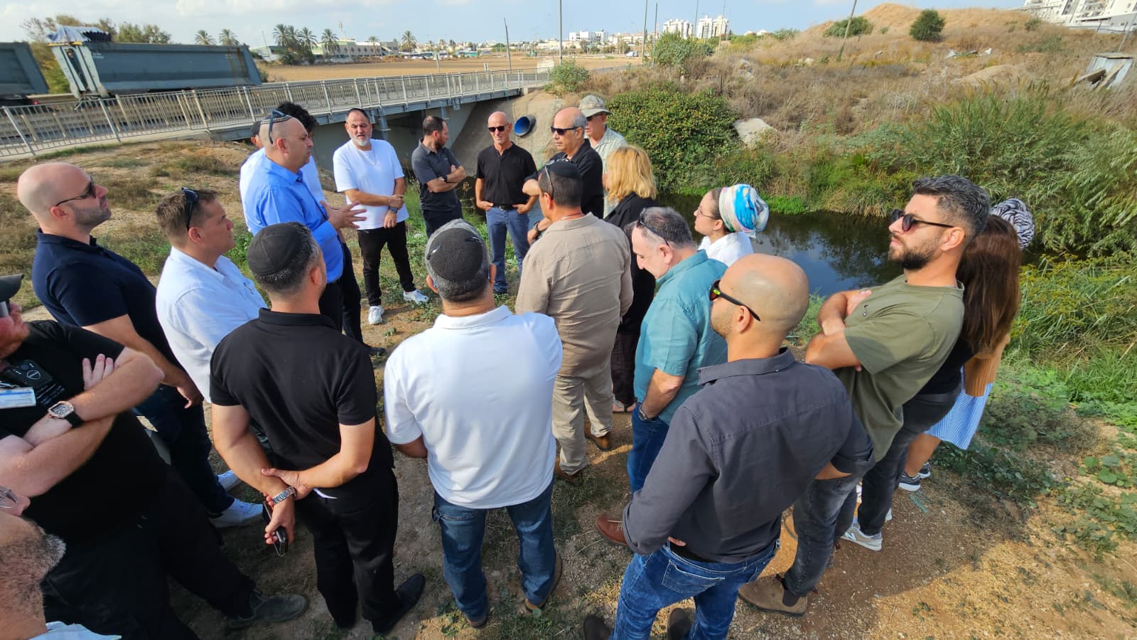 נציגי הרשויות האחראיות על הנחל - בסיור עם ראש העיר והשרה לאיכות הסביבה