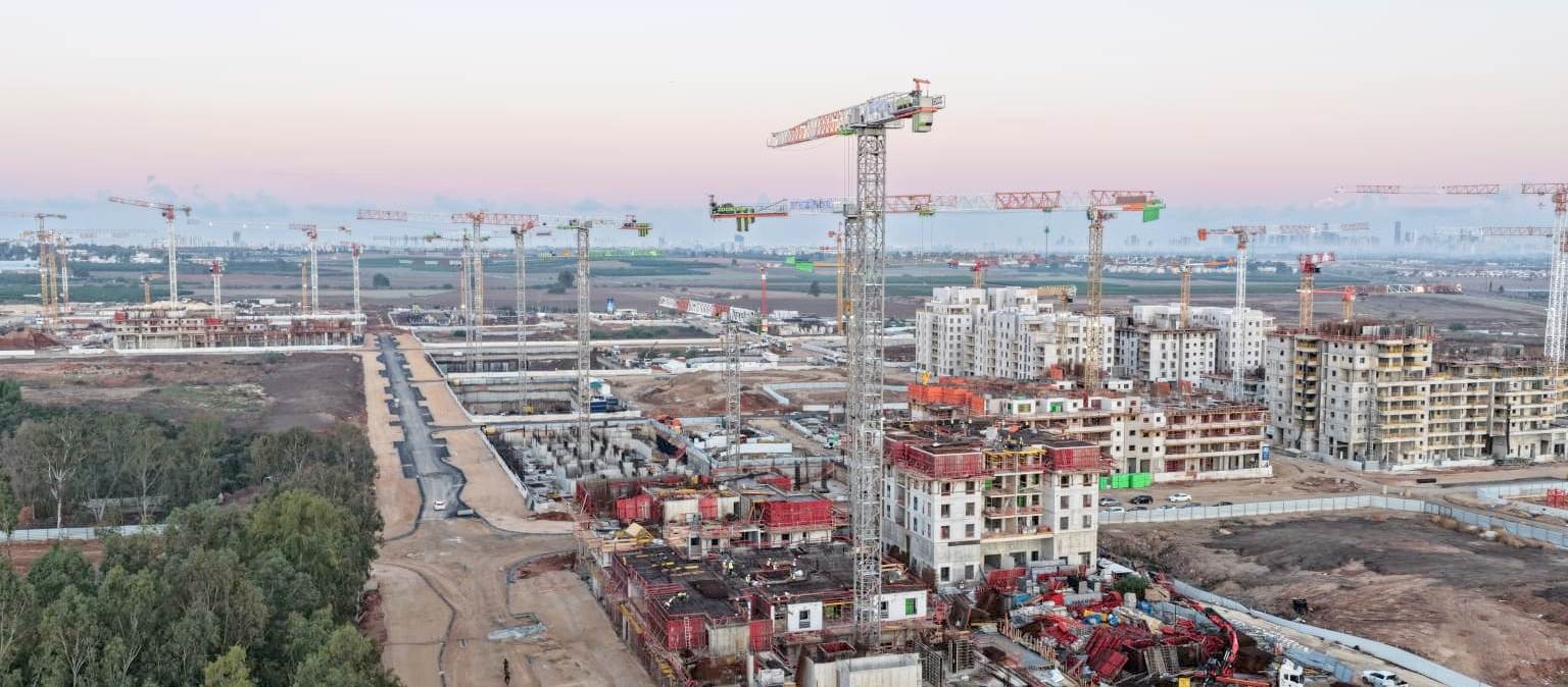 מנופים בכל פינה בעיר. בנייה מאסיבית של אלפי יחידות דיור בלוד