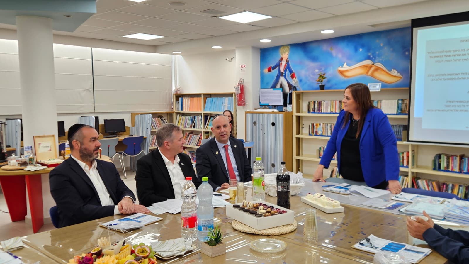 השר מתארח בבית הספר מעפילים בניהולה של מלי פרץ זריהן