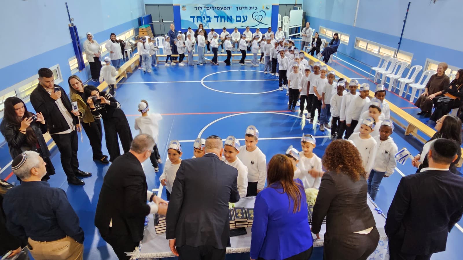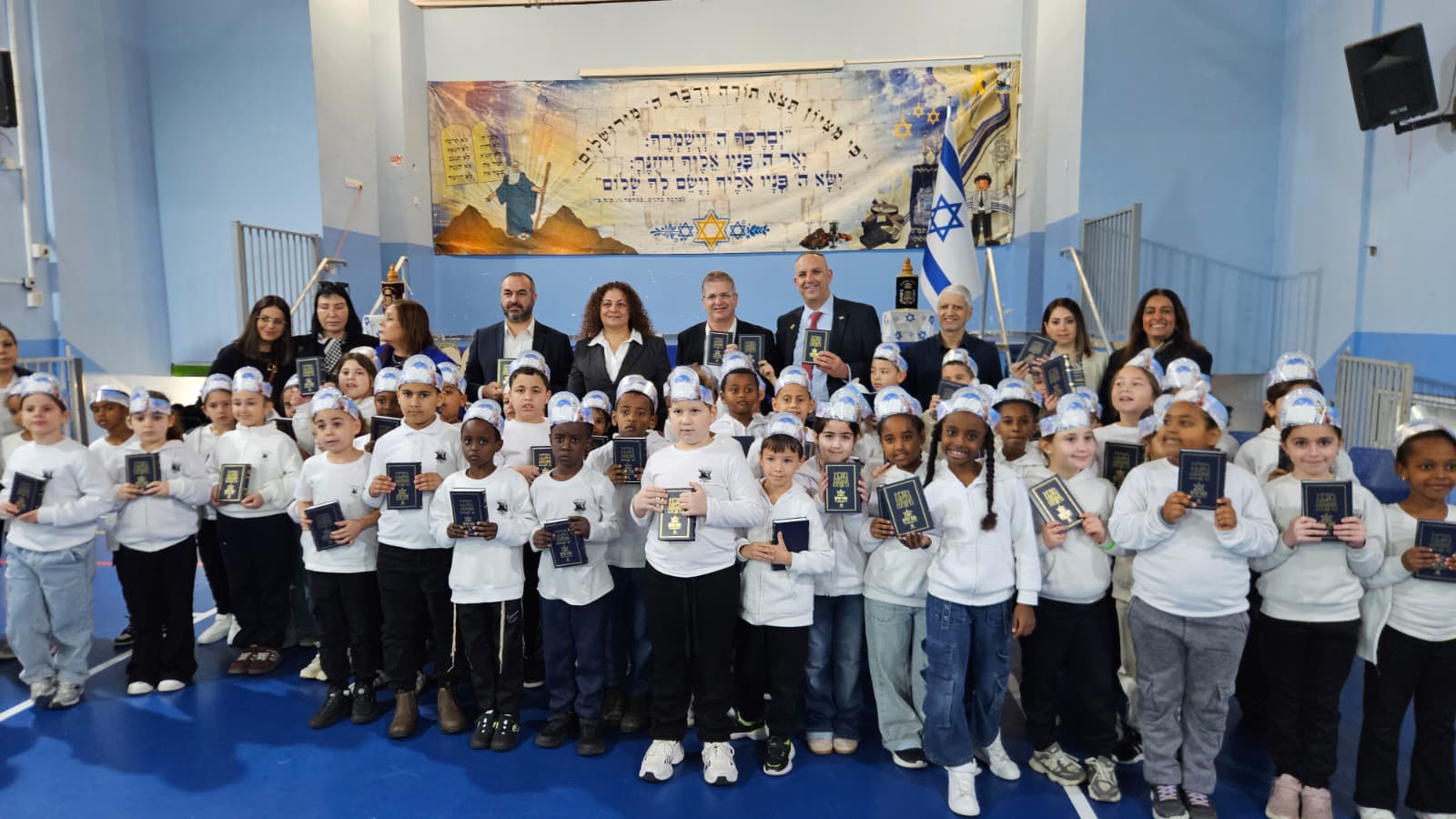 כמיטב המסורת: בטקס מרגש שנערך הבוקר העניקו שר החינוך יואב קיש וראש העיר לוד – עו"ד יאיר רביבו, את ספר התנ"ך לעשרות תלמידי כיתה ב' בבית החינוך 'מעפילים' בניהולה המסור של מלי פרץ-זריהן.