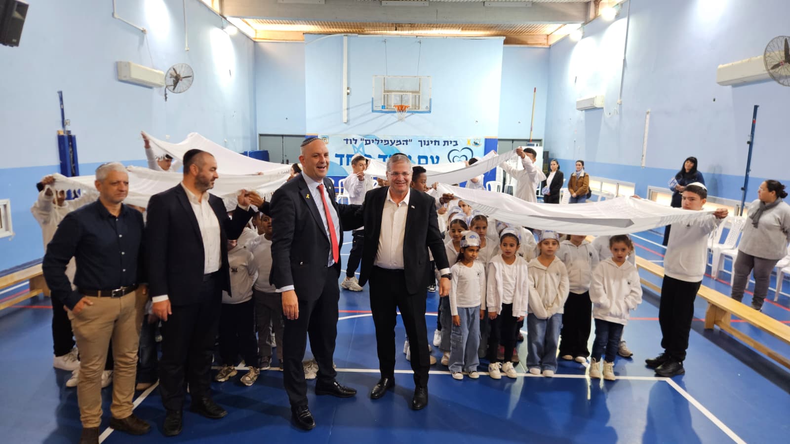 שר החינוך וראש העיר לוד העניקו את ספר התנ"ך לתלמידי בית הספר 'מעפילים'