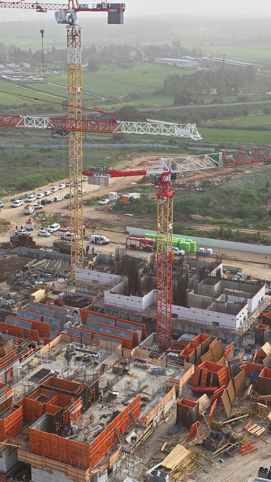 לוחמי האש מתחנת איילון הוזנקו לפני זמן קצר לזירת אירוע בעיר לוד, בעקבות דיווח על שני לכודים הנמצאים על עגורן בגובה של כ-50 מטרים.