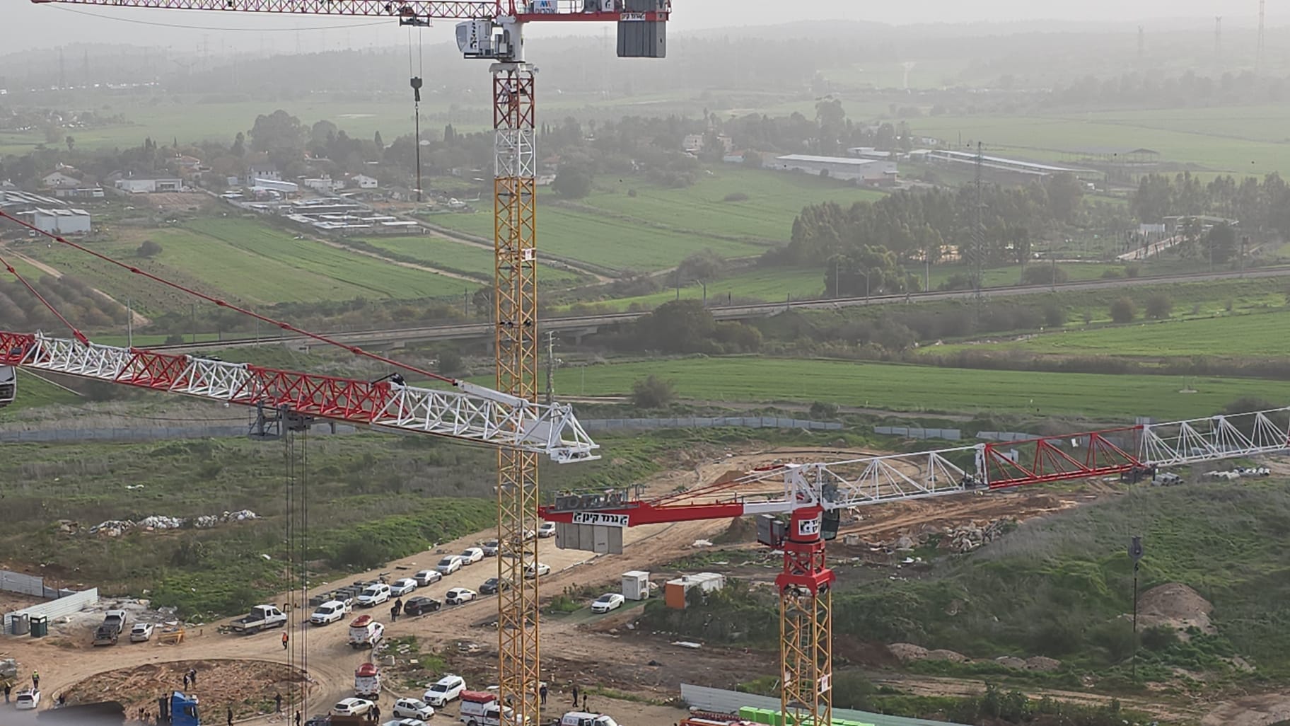 חילוץ מורכב בגובה רב: שני לכודים על עגורן בלוד