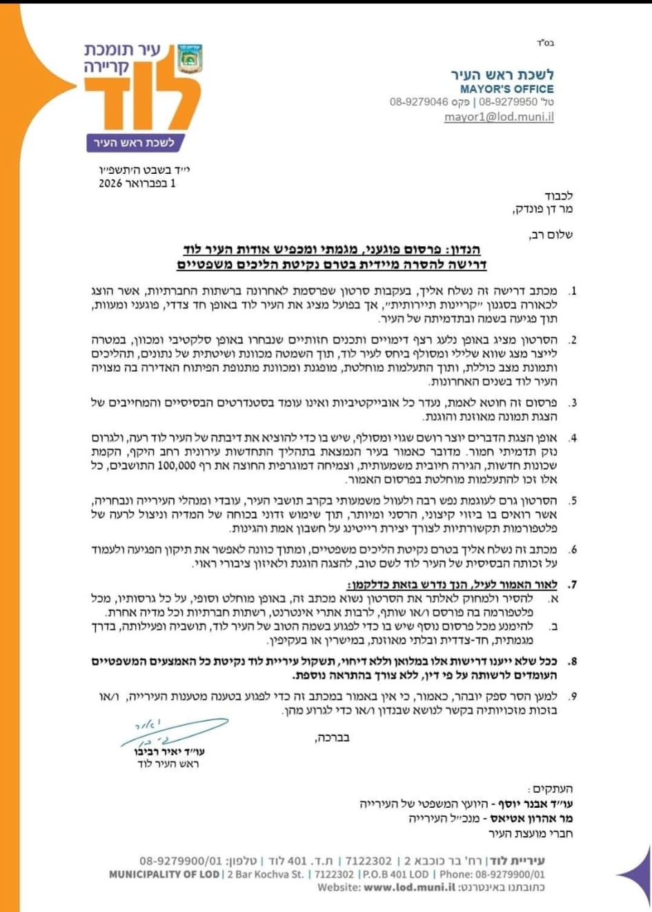 לוד: היוצר דן פונדק קיבל מכתב התרעה מראש העיר – והגולשים חלוקים