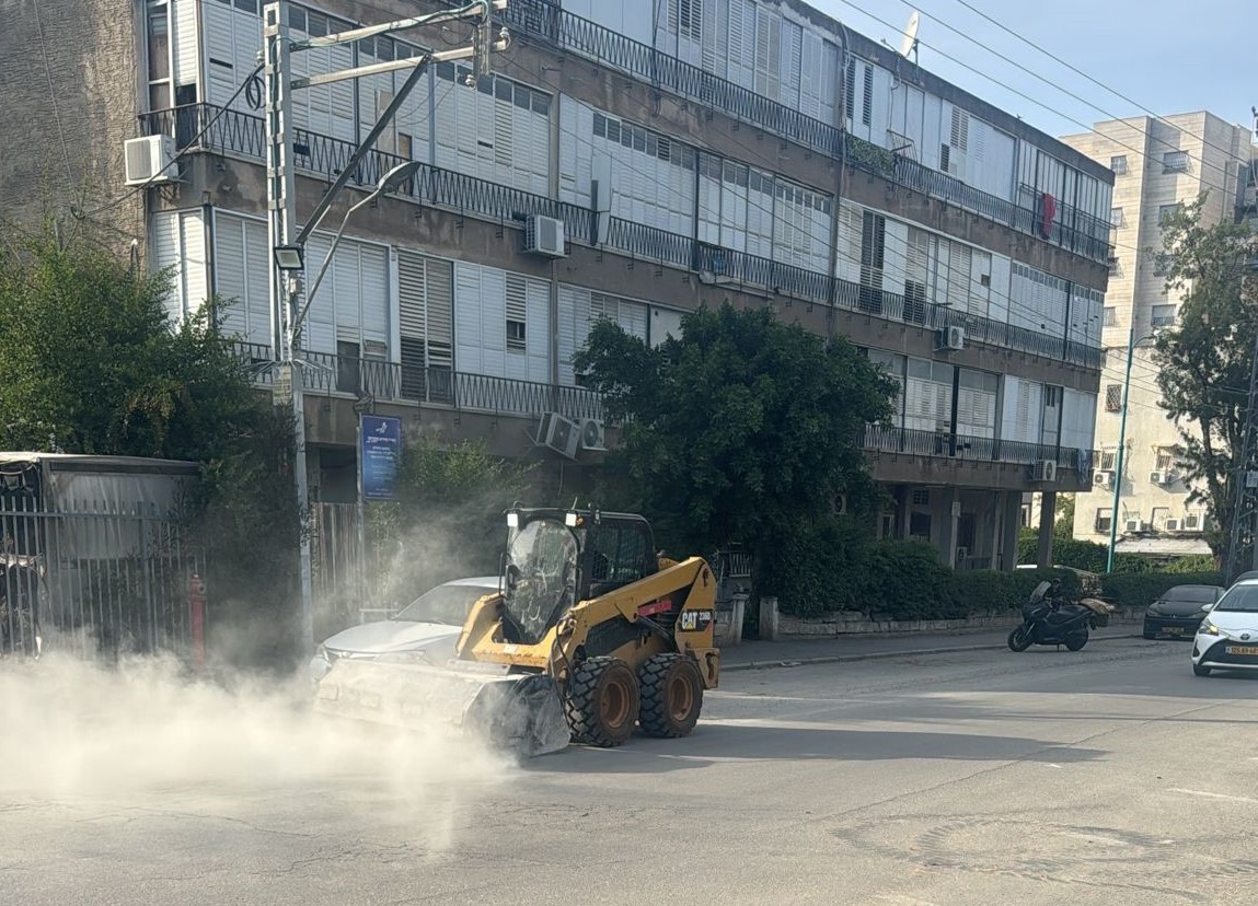 הבטון והעפר שהשאירה המשאית ברחוב כצנלסון