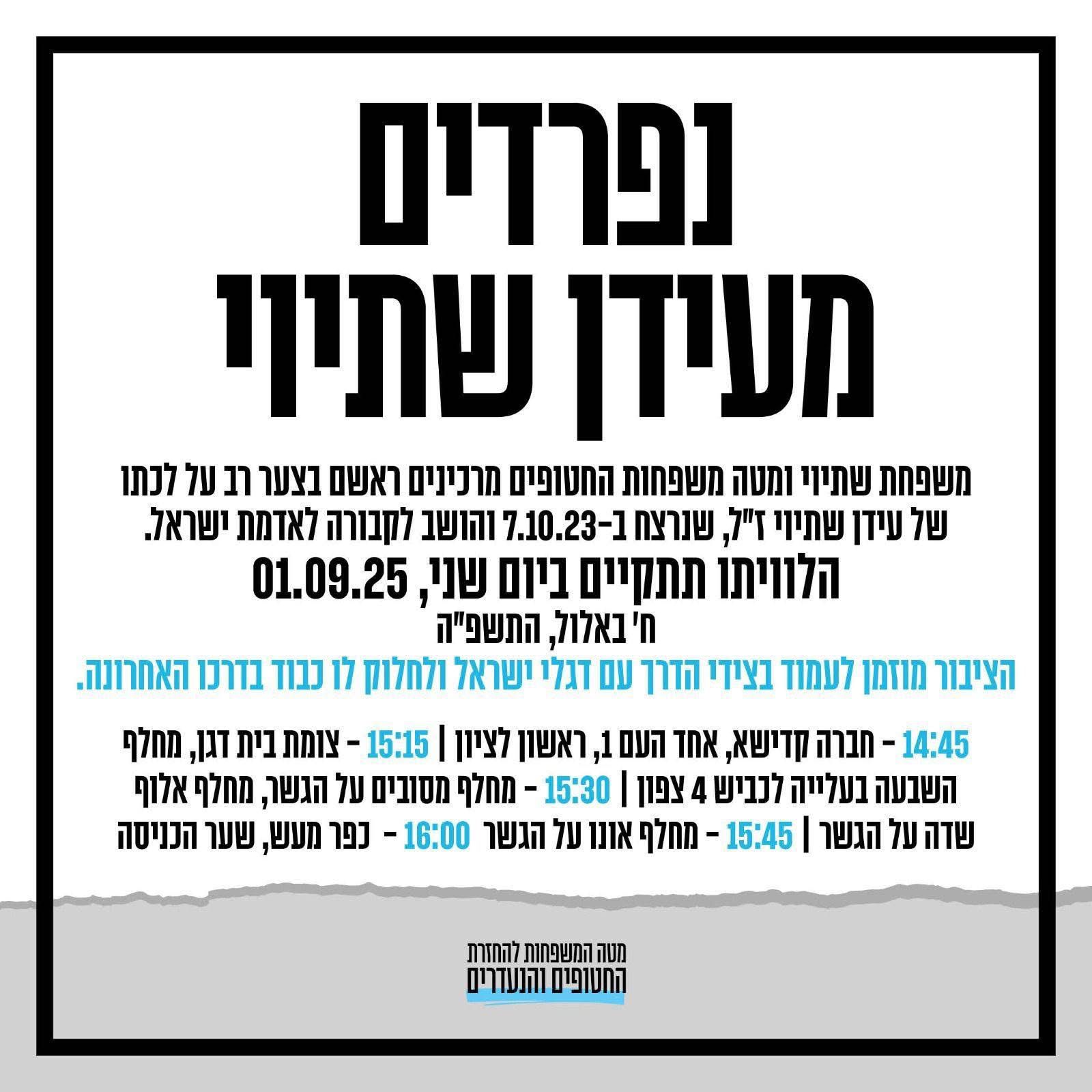 ביום שני התקיימה הלוויה של עידן שתיוי הי״ד, שנרצח במסיבת הנובה ב־7.10. אלפי אזרחי ישראל מכל רחבי הארץ יצאו לעמוד בצידי הדרכים, לחלוק כבוד אחרון לנער שנגדע באכזריות בתחילת חייו הבוגרים.