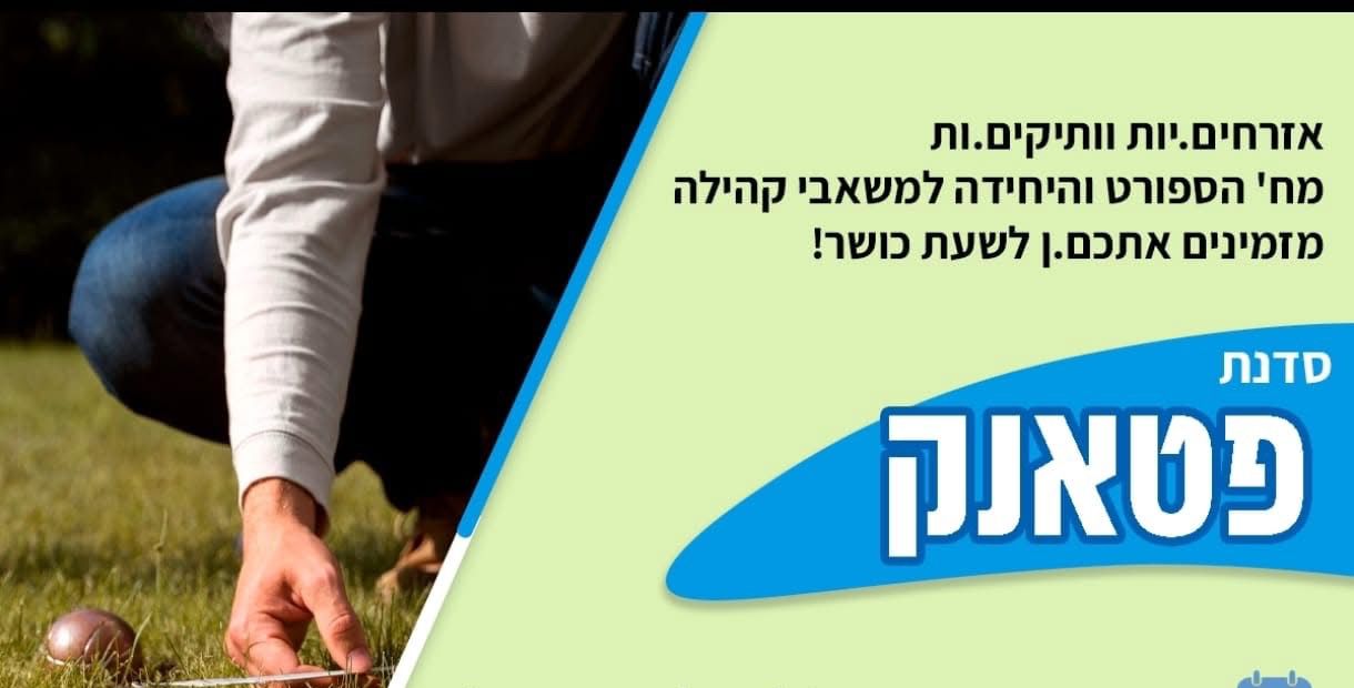 מחלקת הספורט והיחידה למשאבי קהילה שמחות להזמין את האזרחים הוותיקים להשתתף בסדנת פטאנק ייחודית, שתתקיים לאורך עשרה מפגשים מהנים.