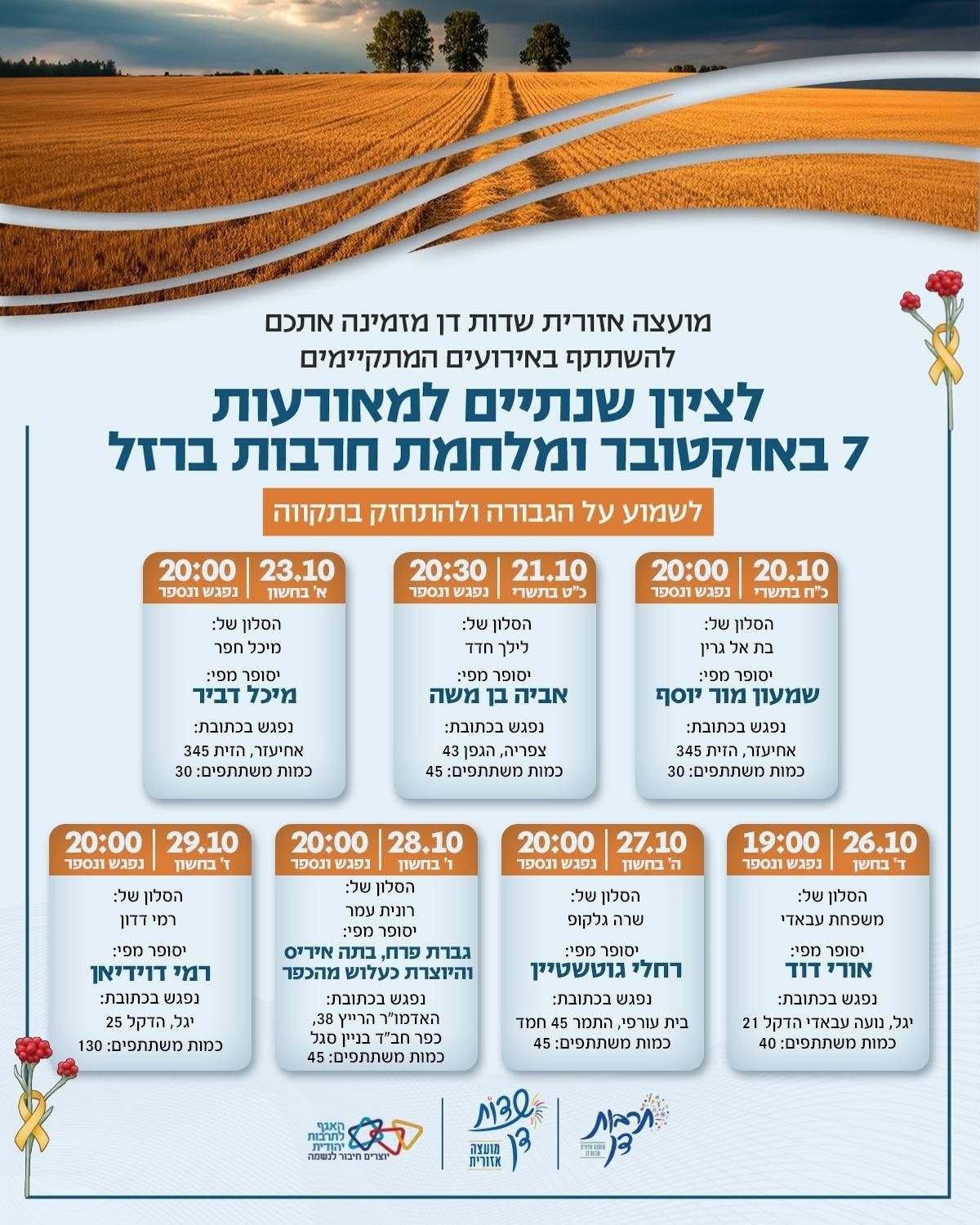 שדות דן מתכנסת לזכור ולרפא: ערב מיוחד לציון שנתיים ל־7 באוקטובר