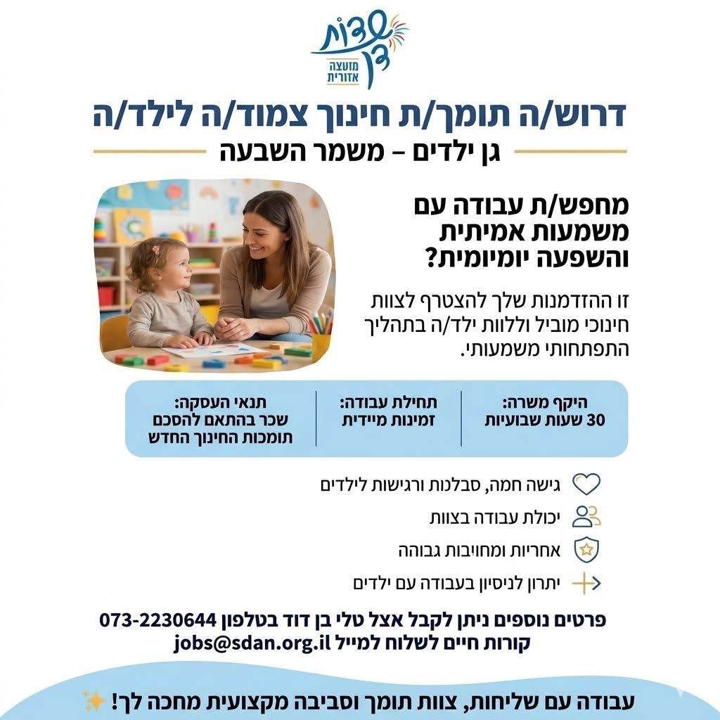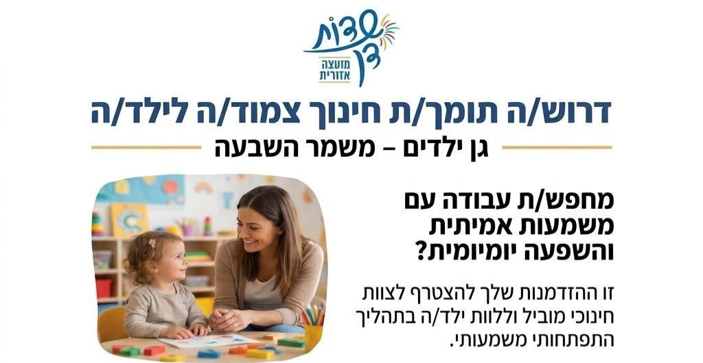 דור העתיד מתחיל כאן: הזדמנות להשתלב בעשייה חינוכית משמעותית בגני הילדים של שדות דן